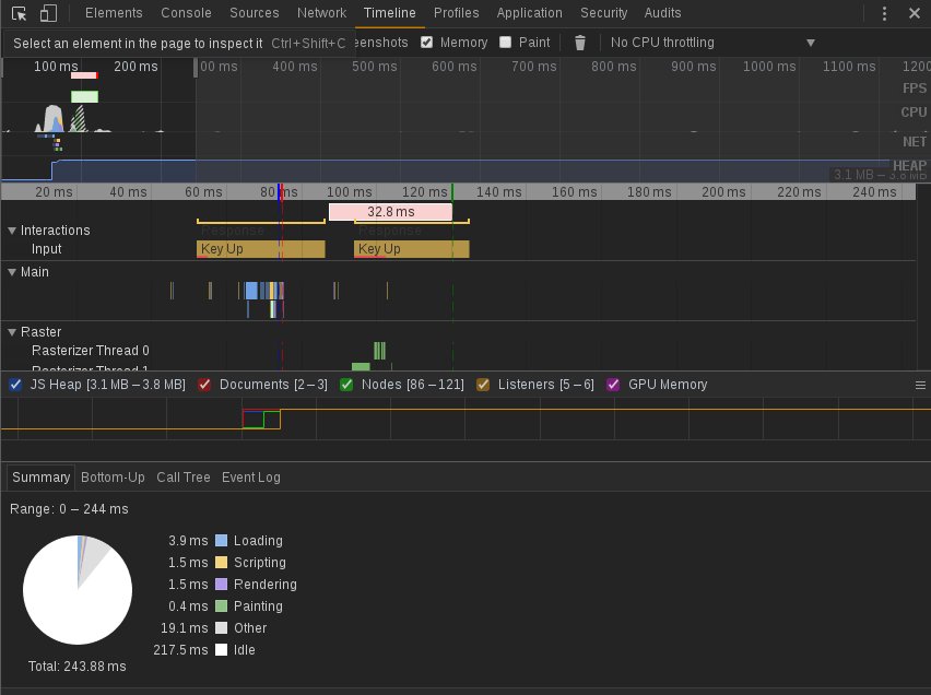 使用 DevTools 的 Timeline 查看页面加载情况。 如果你对 DevTools 不熟悉, 可以看下 Chrome DevTools 快速入门 的官网文档 。 实际上这里并用不到很多这方面的知识。 稍微有所了解就行。 在使用 Timeline 的时候要注意开启隐身模式, 不然会存在诸如游览器插件等干扰因素。